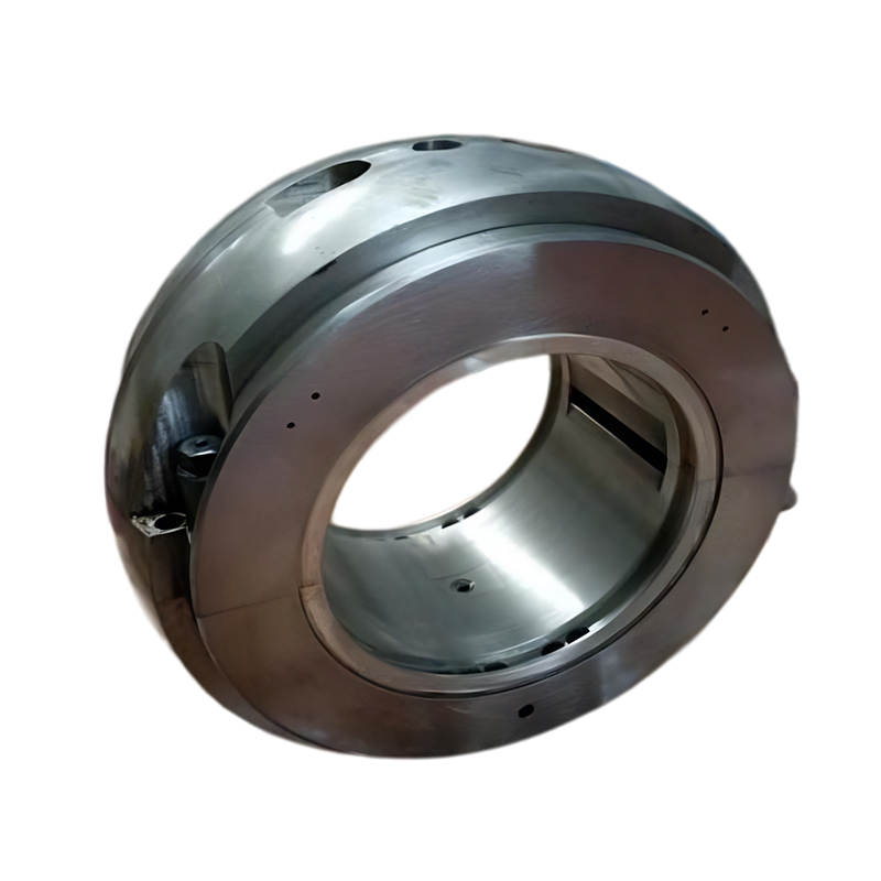 Опорные подшипники воспринимают вес ротора и силы неуравновешенности, поддерживают радиальный зазор между ротором и статором. За счет смазки масляной пленкой уменьшаются потери на трение и значительно снижается нагрев подшипника. Нормальная работа опорных подшипников является залогом стабильной работы всего агрегата. На внутренней поверхности опорного подшипника нанесен слой баббита. С помощью ключевой технологии центробежного литья легкоплавкий баббит соединяется с основным корпусом подшипника, после чего механической обработкой и сборкой получается готовое изделие.